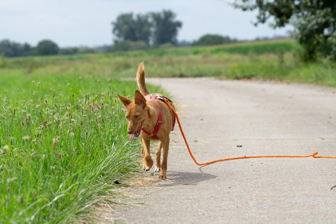 Abril ist sehr bewegungsfreudig, genießt lange Spaziergänge und schnüffelt sich ausgiebig durch die vielen Gerüche. Rassebedingt bringt Abril eine ordentliche Portion Jagdtrieb mit und wird daher nur an Menschen vermittelt, die bereit sind, sie (wahrscheinlich) lebenslang an der Leine zu führen.