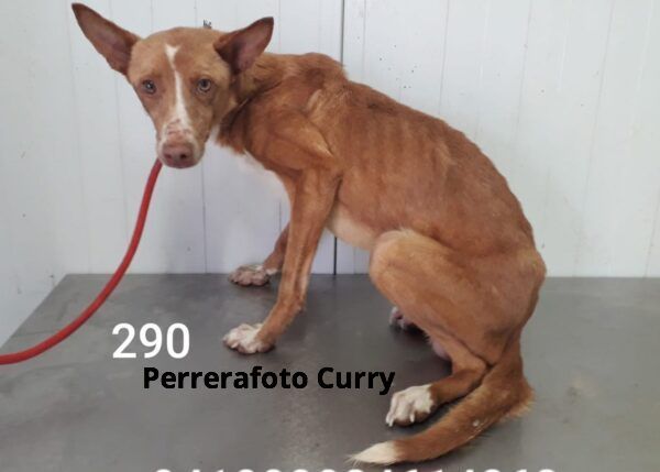 Bei der Feier zu unserem Vereinsjubiläum wurde Curry vorgestellt als ein Notfallhund aus der Perrera Resur Linares. Mehrere Mitglieder haben sich zusammengetan und beschlossen gemeinsam die Rettung von Curry zu finanzieren. Wir haben Curry so reservieren können und ihn in Sicherheit bringen lassen.