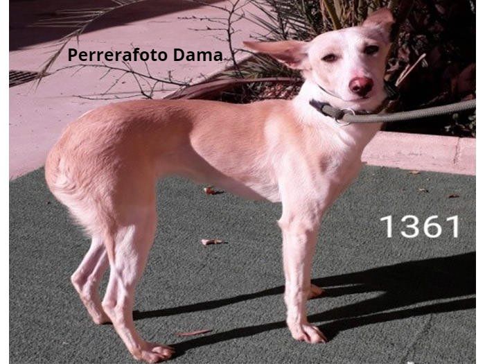 Dama hat ein sehr edles und stolzes Erscheinungsbild mit großer Ausdruckskraft. Dama mag Menschen und kommt sehr gut mit anderen Hunden zurecht. Sie ist feinfühlig und sensibel, ruhig und unkompliziert, mag auch kleinere Hunde sehr gerne. Dama ist eine zarte Seele, die zu ruhigen und freundlichen Menschen passen würde.
