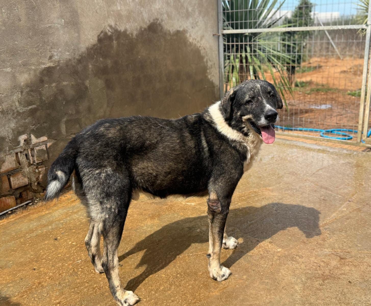 Pluto ist ein Mastin-Mix, den wir aus der Perrera ResurJA in Linares heraus geholt haben. Sein Vorleben kennen wir nicht. Pluto ist ein gutmütiger, großer Hund, der freundlich mit anderen Hunden ist und auch die Nähe der Menschen sucht, hier zeigt er sich sehr aufgeschlossen und zugewandt. Pluto ist unkompliziert. Er bräuchte einen Platz, der gesichert umzäunt ist und Rasseerfahrung vorhanden ist. Pluto ist aufgrund seiner Rasse kein Anfängerhund.